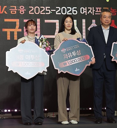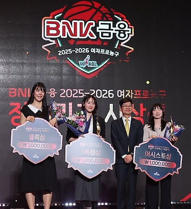 [2025-26 WKBL 정규리그 시상식] 통계상 블록상 박지수 / 3득점상 강이슬 / 어시스트상 허예은