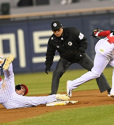 비디오 판독 다 쓴 LG, 문성주 2루에서 아웃
